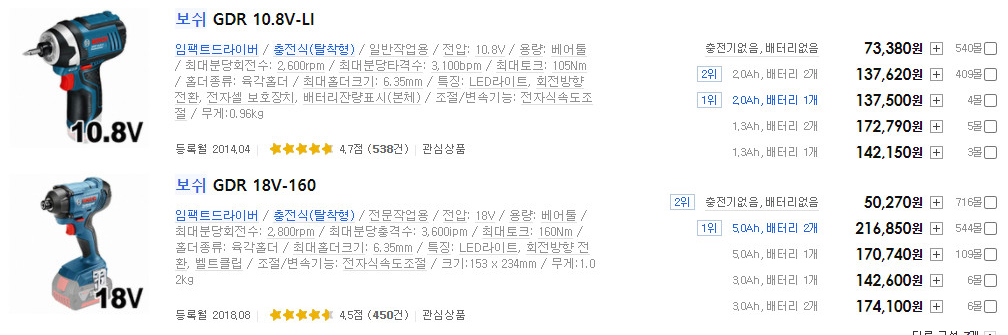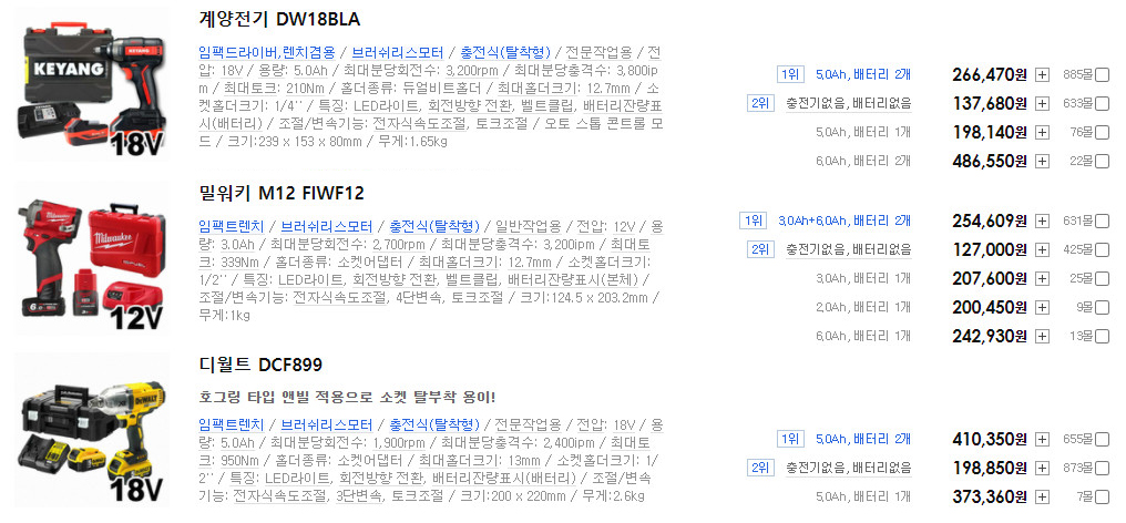 이 두 제품은 복스의 체결 방식, RPM, 토크 정도로 구별 할 수 있는데,