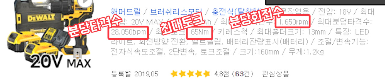 모터의 RPM과 토크, 그리고 1분에 얼마나 타격할 수 있는지 분당 타격수도 중요하죠.