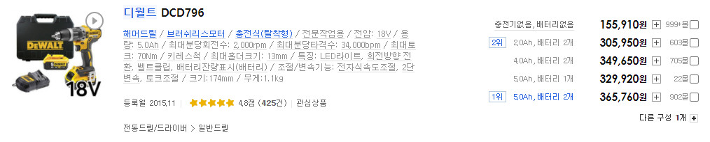 본체만 보면 저렴해 보이지만 배터리를 추가하면 가격이 꽤 높이 올라갑니다.