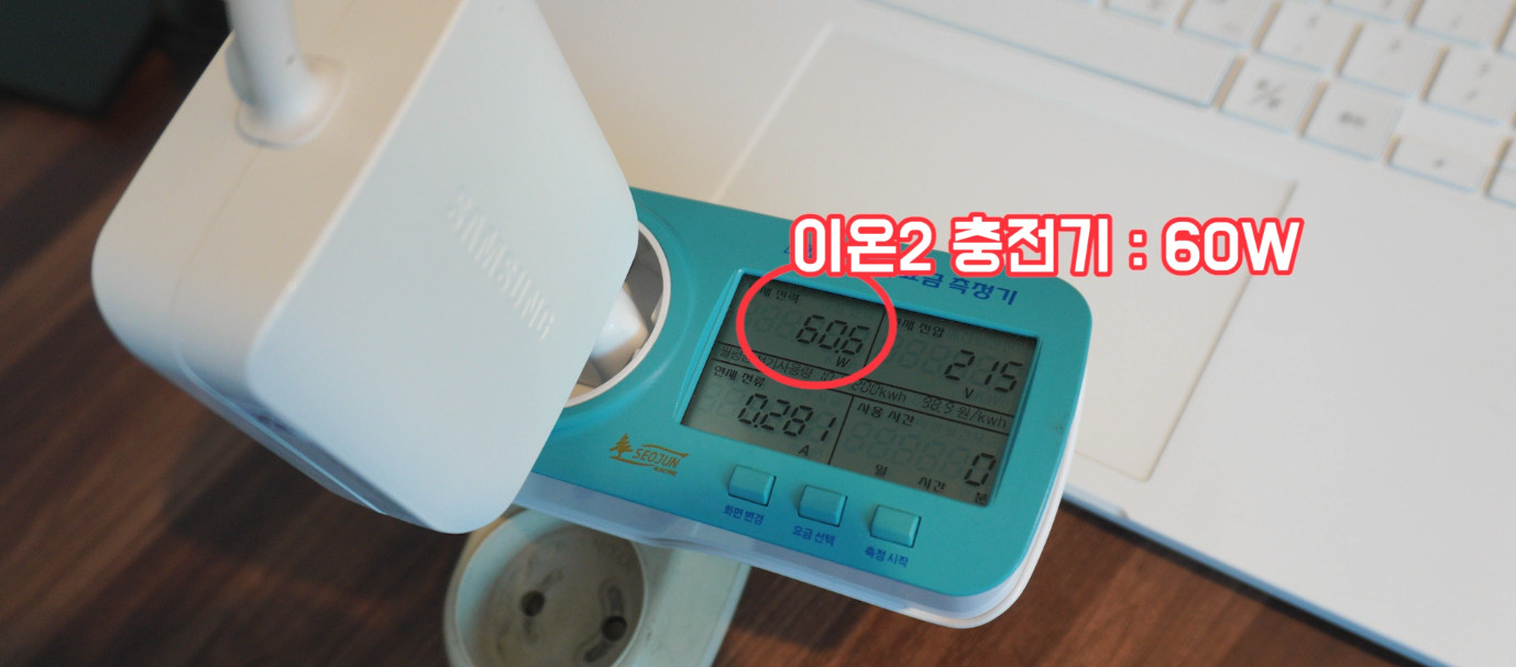 그리고 실 사용에서 느꼈던 이온의 가장 큰 장점 중 하나가 낮은 전력으로도 충전이 된다는 것이었습니다.