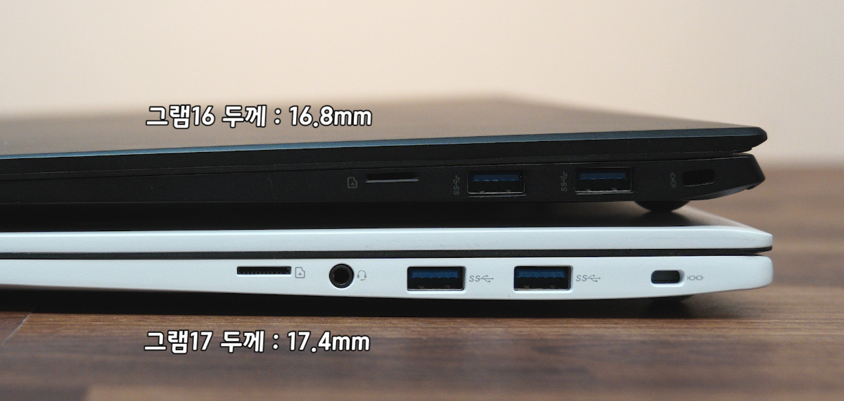 그램17은 그램16과 비교해서 상대적으로 좀 더 크고 무거울 뿐
