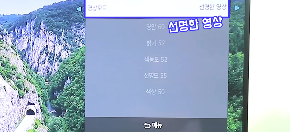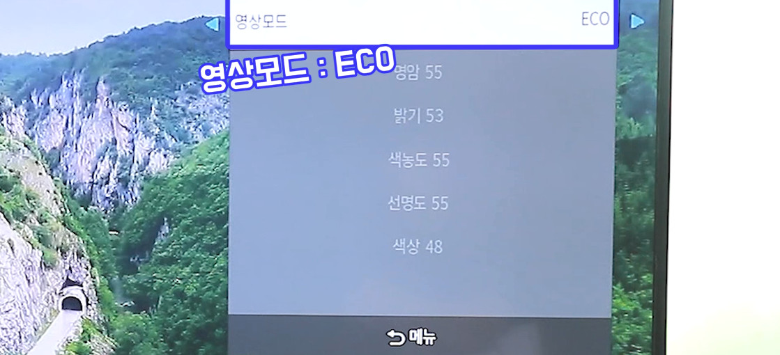 기본 영상 모드가 "ECO"로 되어 있더라고요.