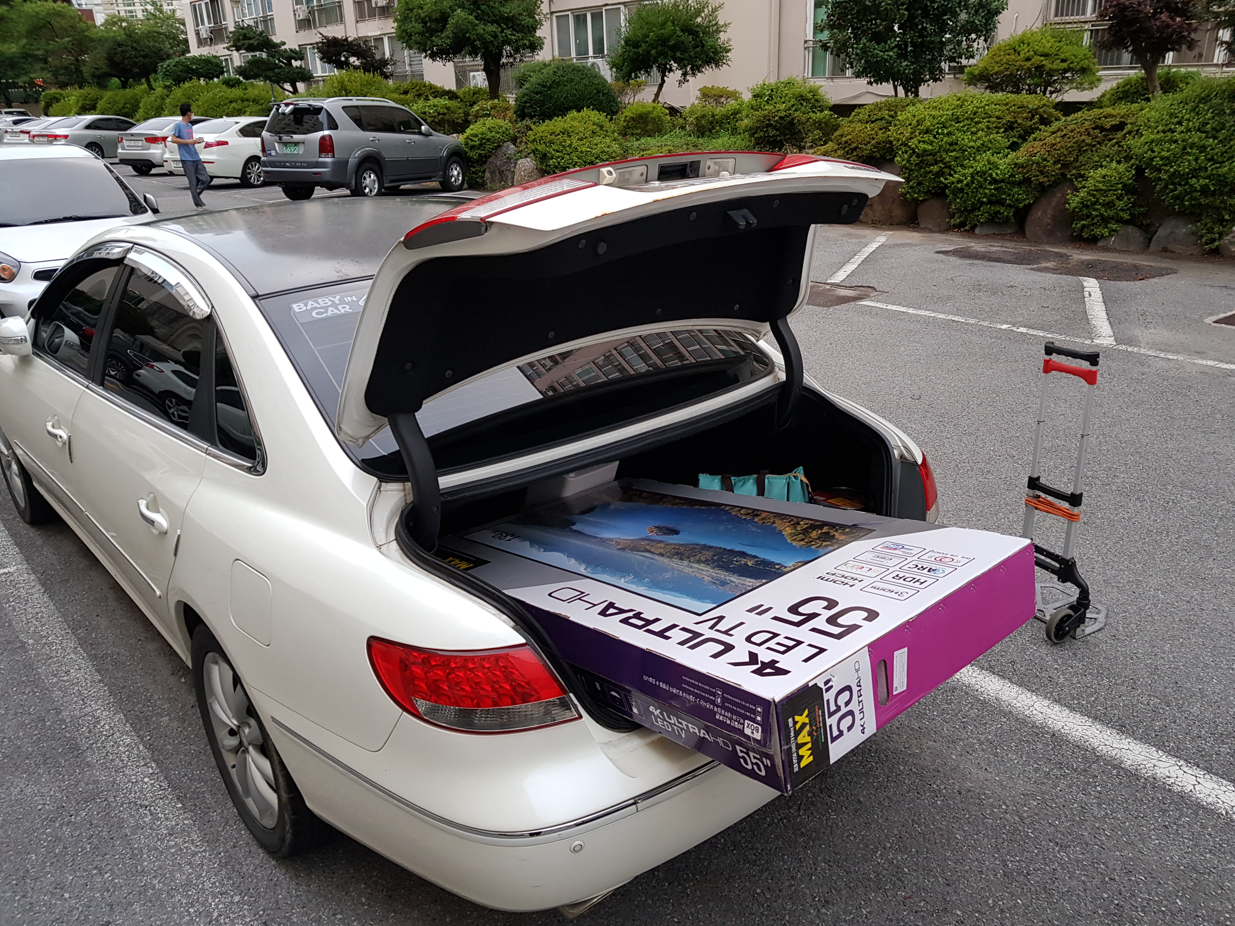 제가 배송비 포함 40만 원 초반에 구매한 이 55인치 4K TV를