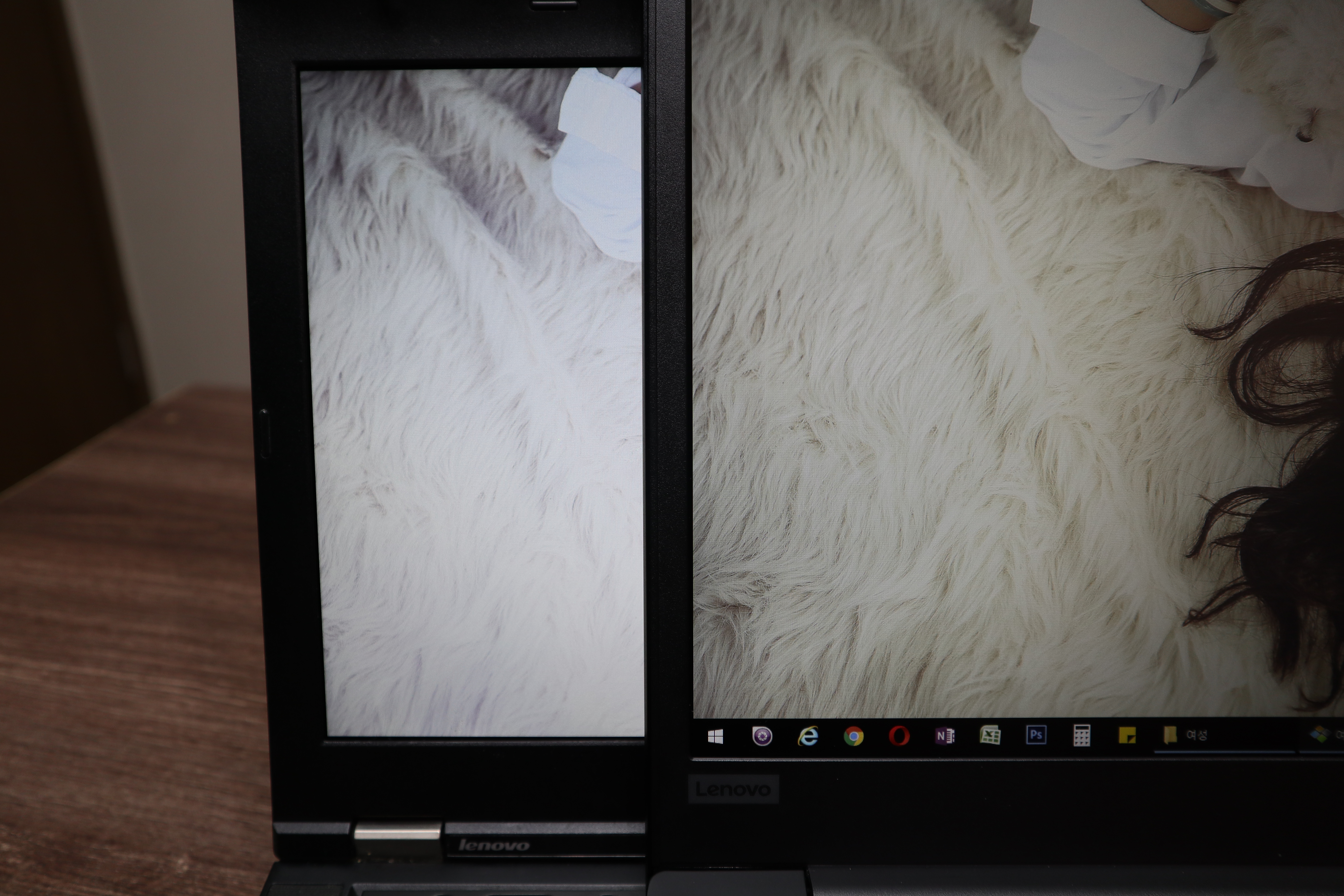 제가 가지고 있는 노트북을 통해 3개의 디스플레이를 비교해 보겠습니다. 왼쪽이 싱크패드T430(TN패널) 중앙이 싱크패드 E595(보급형IPS) 오른쪽이 싱크패드 L390(고급형IPS) 입니다.