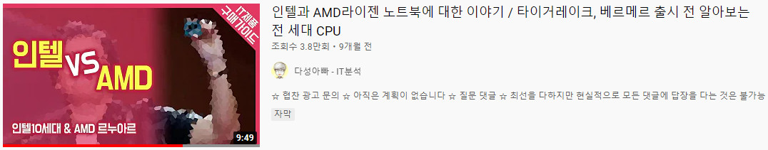 어도비 프로그램에서의 최적화는 라이젠 CPU보다 인텔 CPU가 좀 더 앞섭니다.