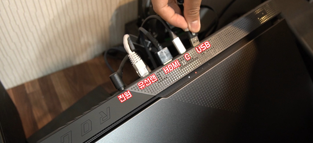 전원, 유선랜, HDMI, C포트, USB포트 모두 사용하고