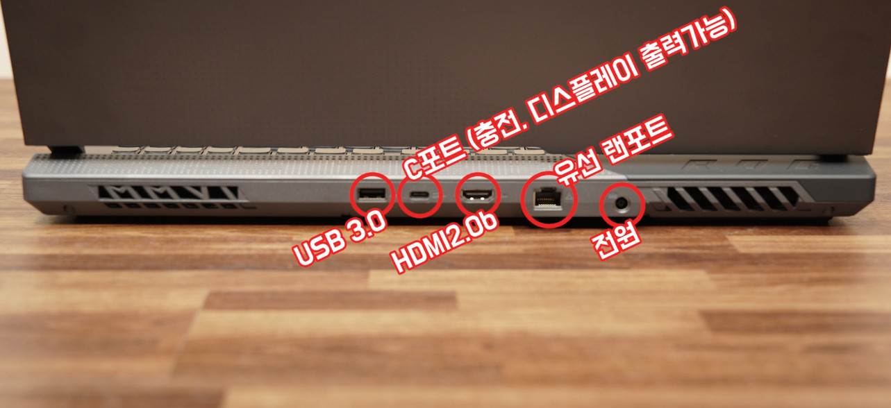후면에 포트들이 몰려 있는 게이밍 노트북을 많이 볼 수 있는데