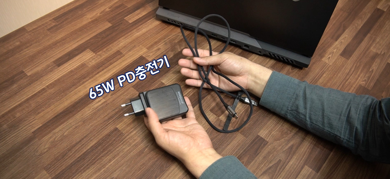 그래서 제가 가지고 있는 65W PD충전기를 연결해 봤는데
