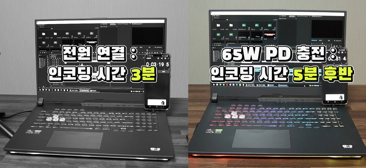 참고로 스트릭스가 권장하는 100W PD충전기를 사용하면 당연히 상황은 좀 더 나아질 수는 있겠지만