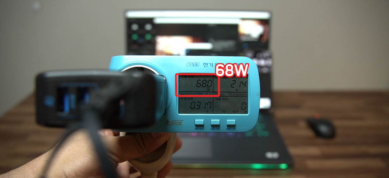 65W의 PD충전기인데, 68W 정도의 출력을 내고 있습니다.
