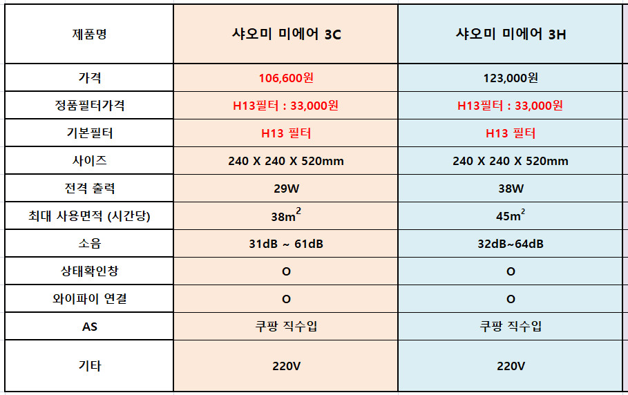 이 두 제품은 같은 필터를 사용하기 때문에 사용에 있어서 큰 차이는 없다고 볼 수 있습니다.