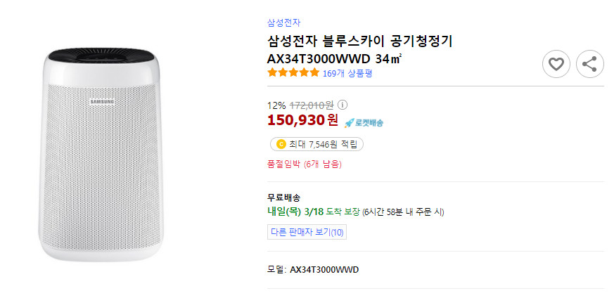 필터 구매와 AS가 편한 국산 공기 청정기로 보고 있다면 삼성 블루스카이가 좋습니다.