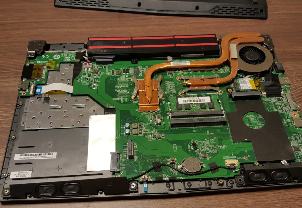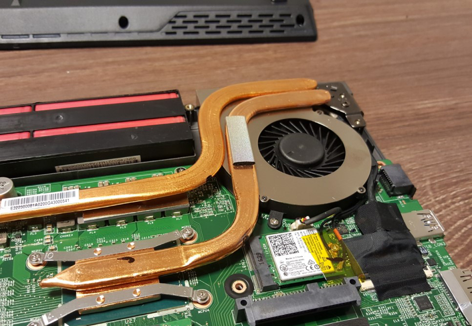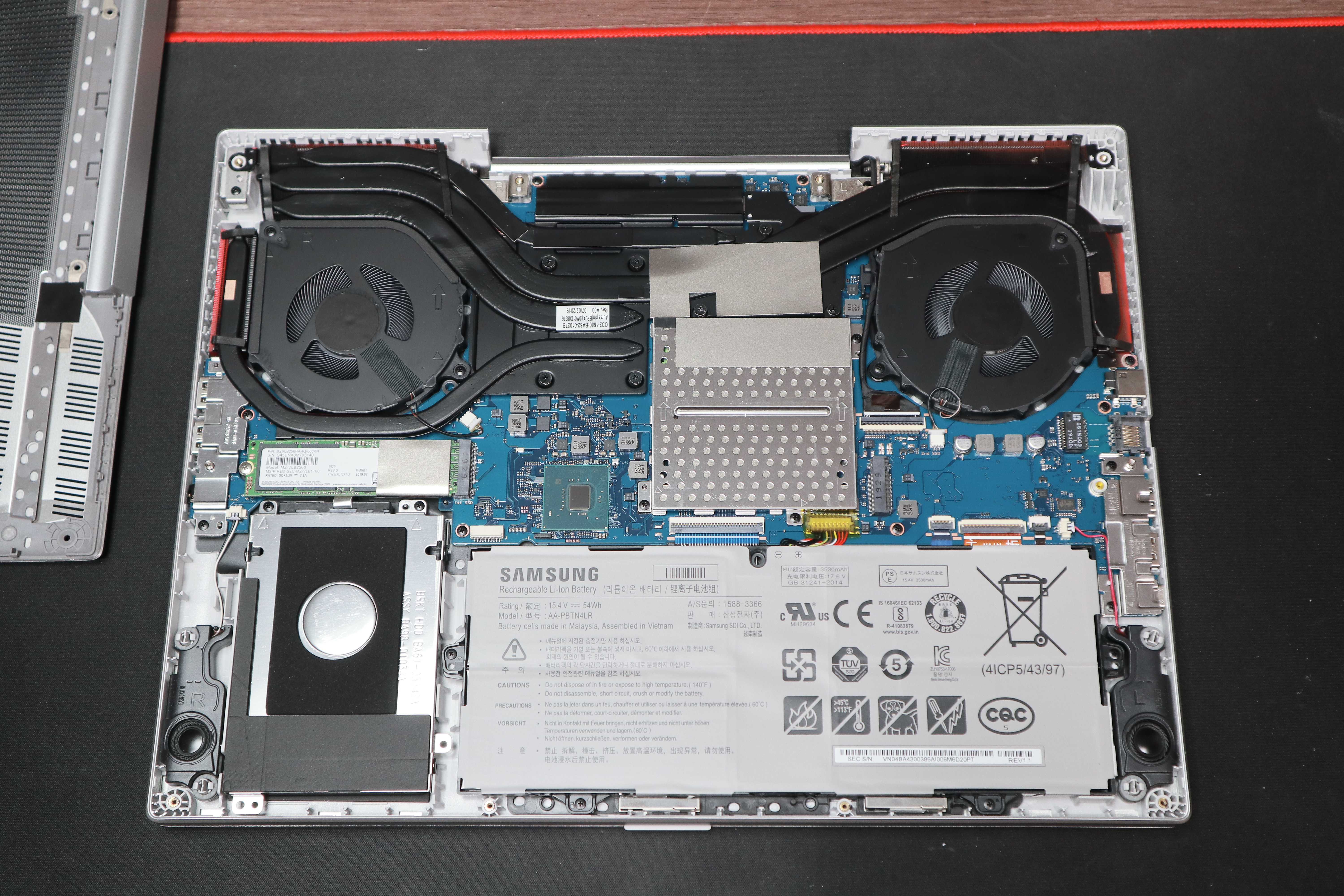 히트파이프가 5개 달려있고 적당한 사이즈의 팬이 2개가 들어있습니다. 물론 히트파이프와 팬을 눈으로만 봐서는 냉각 효능을 수치적으로 파악할 순 없지만 대략적으로 이정도면 괜찮다 수준으로 예상할 순 있죠. 하지만 듀얼팬과 5개의 히트파이프를 좋다고 할 순 없습니다. i7-9750H의 발열이 굉장한 편이기 때문에 굳이 좋다고 하기 보다 적어도 이정도는 설계되어야 한다, 정도로 생각하시면 좋습니다. 저가형의 고성능 노트북들은 이것보다 안되어 있는 경우가 많은데 가격만 본다면 좋은 선택이지만 장기적으로 봤을 때 피하시는 게 좋죠.