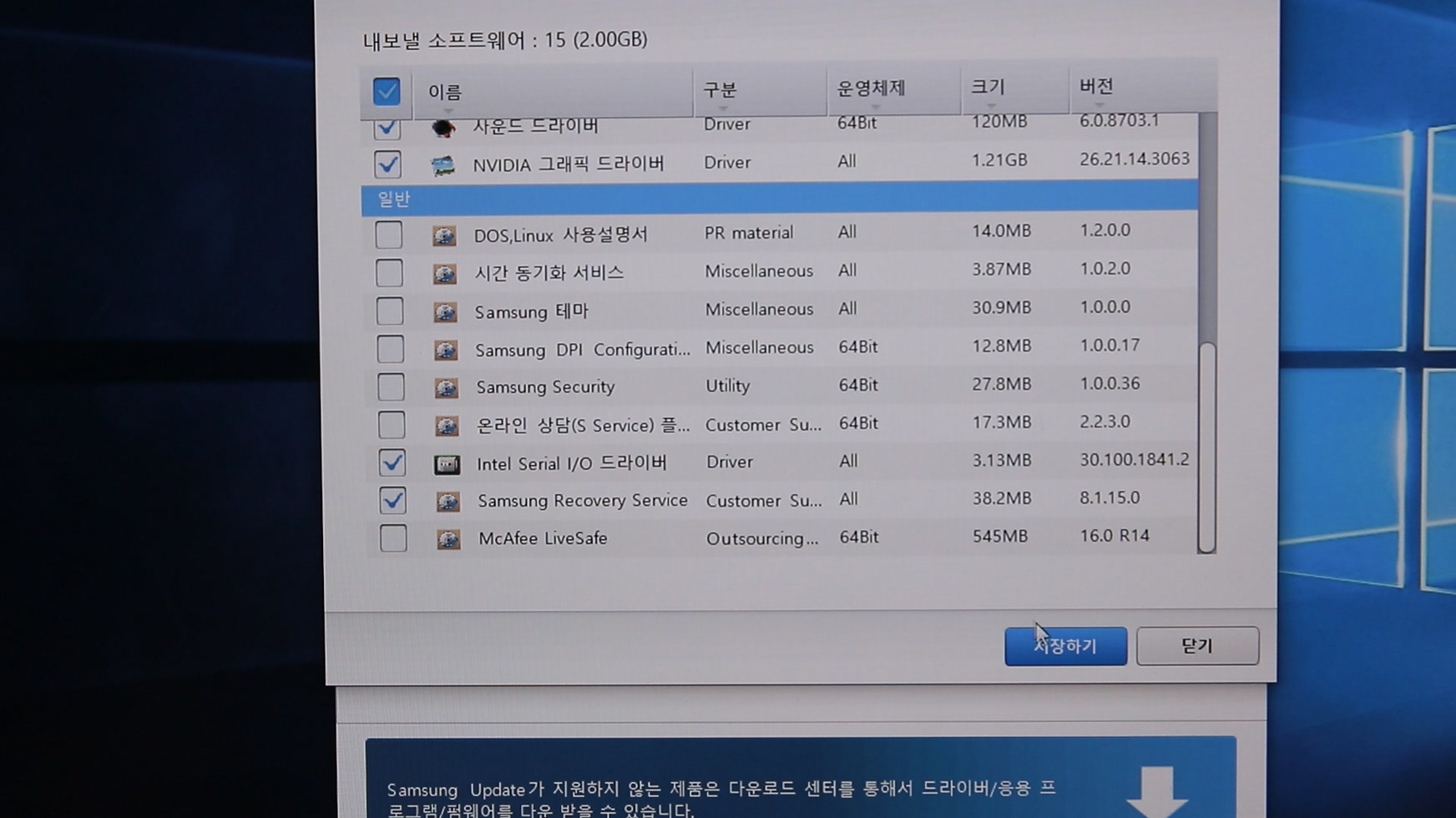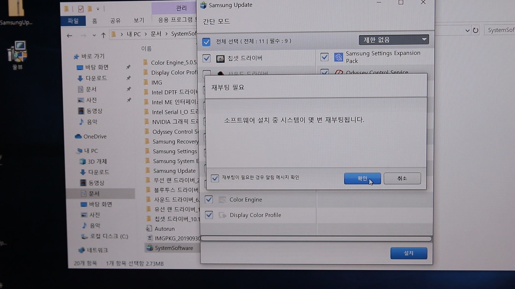 몇번의 재부팅이 일어나고 설치가 완료됩니다. 삼성 프로그램은 정말 깔끔하게 잘 되어있어요. 아까 제가 말씀드린 쓸데 없는 자사 프로그램 설치만 조심하면 될 듯 합니다.