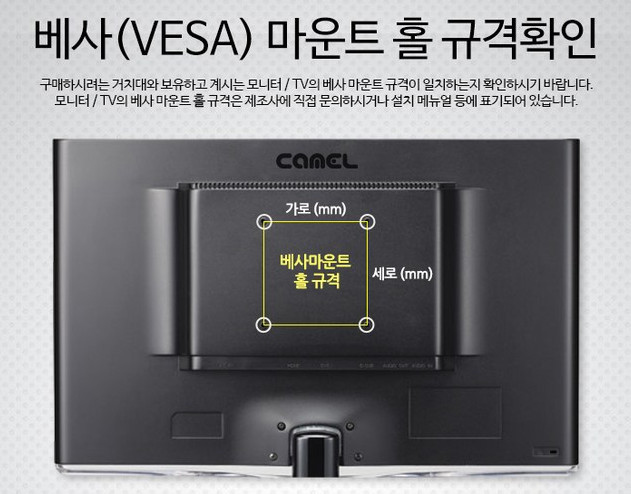 혹시 모르니 사용 중인 TV 뒤에 VESA홀을 한 번더 눈으로 직접 확인해주세요.