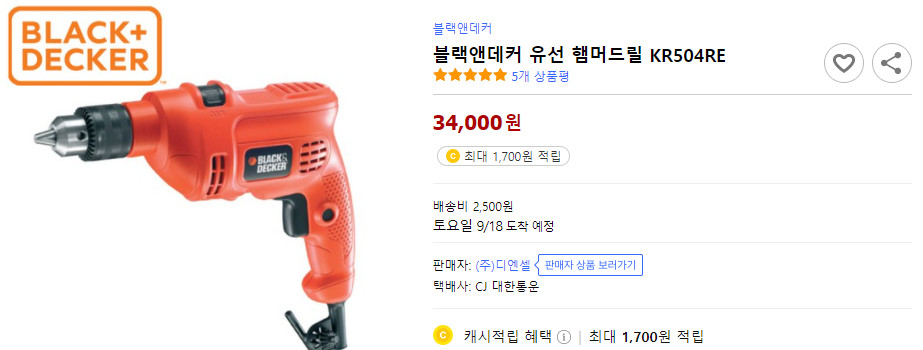 저는 3만 원 대 블랙엔데커 유선 험머 드릴을 사용하고 있고
