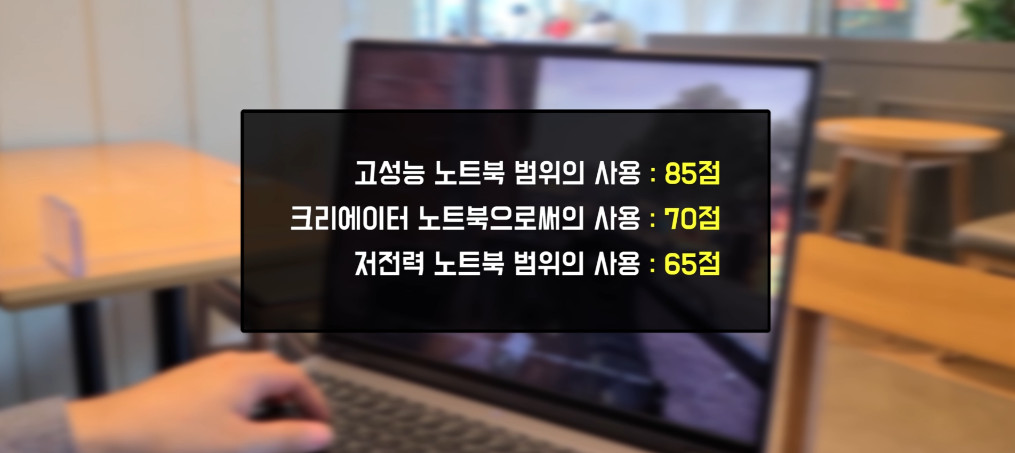 고성능 노트북 범위의 사용 : 85점
