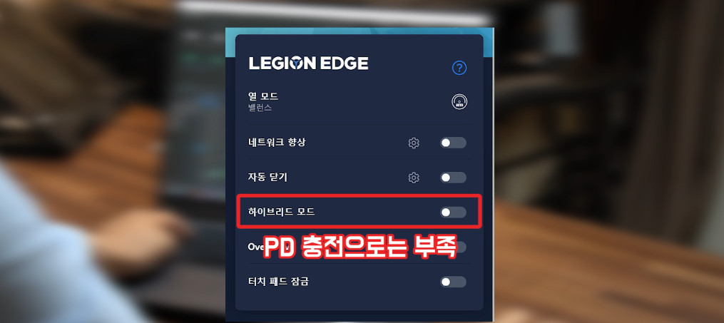 외장 그래픽만 사용하는 고성능 모드는 100W의 PD충전으로는 부족할 수도 있어요.