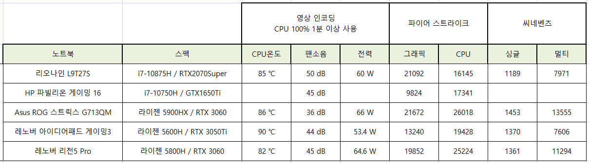 리전5는 게이밍 노트북이기 때문에 고성능 범위만 잘 나오면 됩니다.