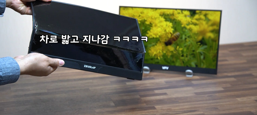 제가 원래 사용하던 15.6인치 휴대용 모니터가 이렇게 박살이 났습니다.