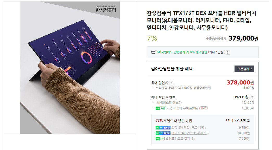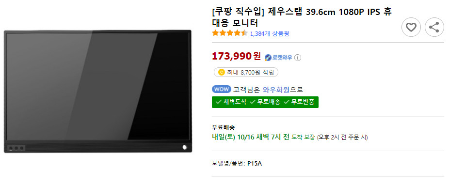 그래서 17.3인치 휴대용 모니터를 구매했습니다.