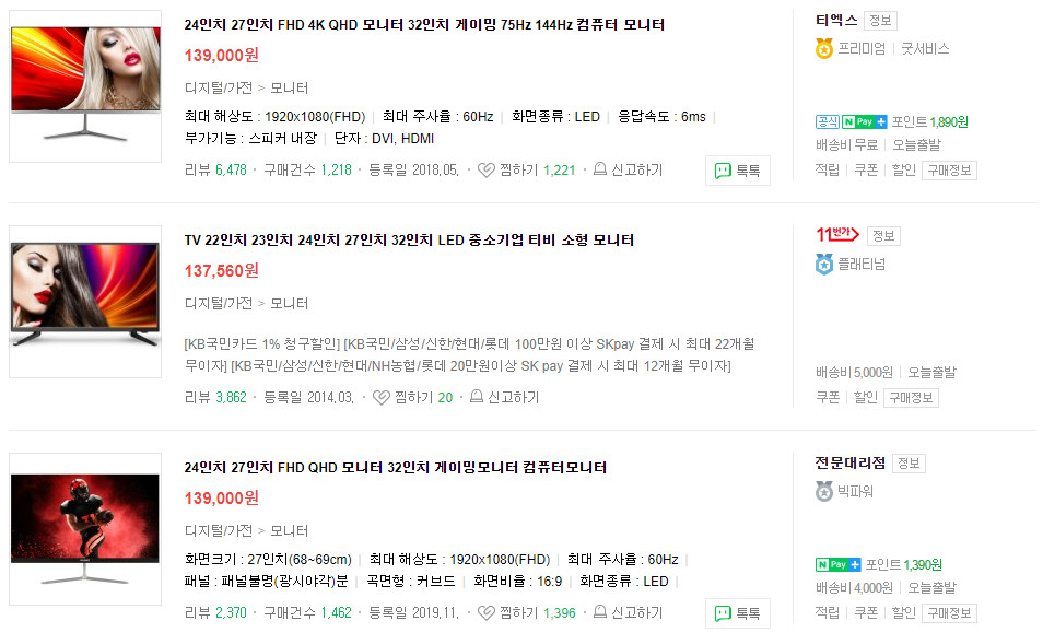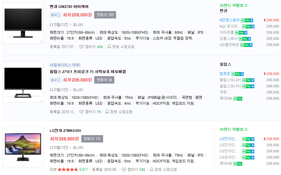 20만 원 초반이면 27인치 크기에 훨씬 더 좋은 화질의 모니터를 살 수 있는데
