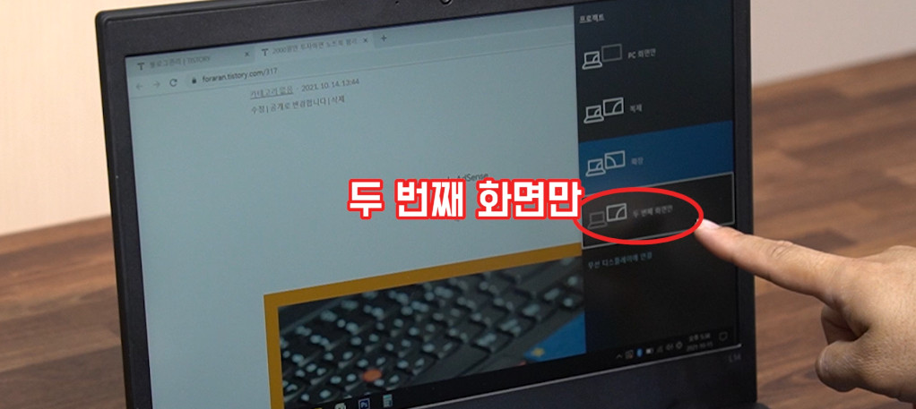 프로젝트 화면 설정은 "두 번째 화면만" 으로