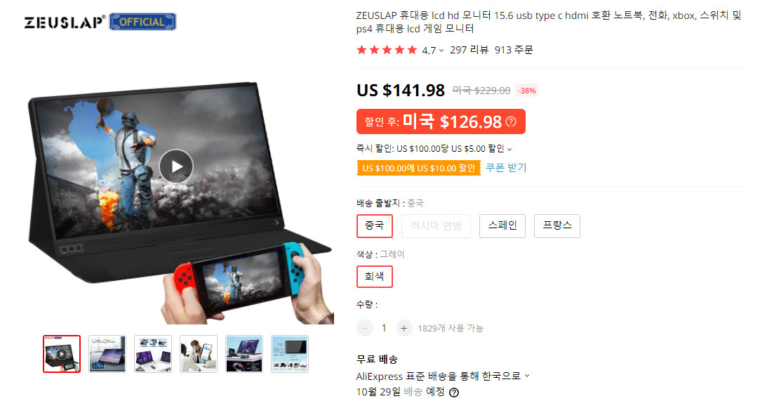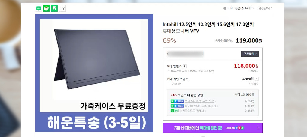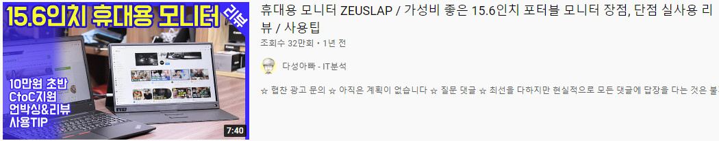 그래서 가격을 고려하지 않고, 15.6인치 휴대용 모니터 구매를 고려한다면 제우스랩 제품을 추천드립니다.