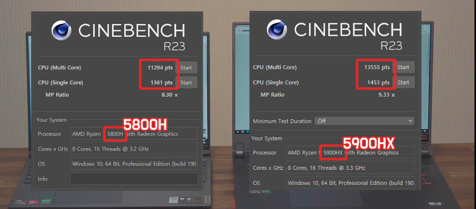 가격을 고려하지 않고 데이터만 보면 당연히 5900HX가 더 좋습니다.