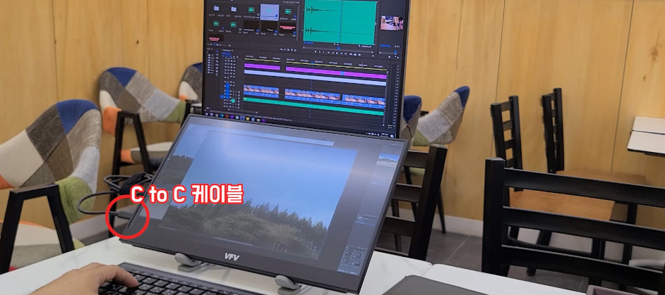 CtoC 케이블로 휴대용 모니터를 연결한 상태에서