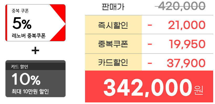 되도록이면 카드할인까지 받아서 최저가로 구매하는 것을 권장합니다.
