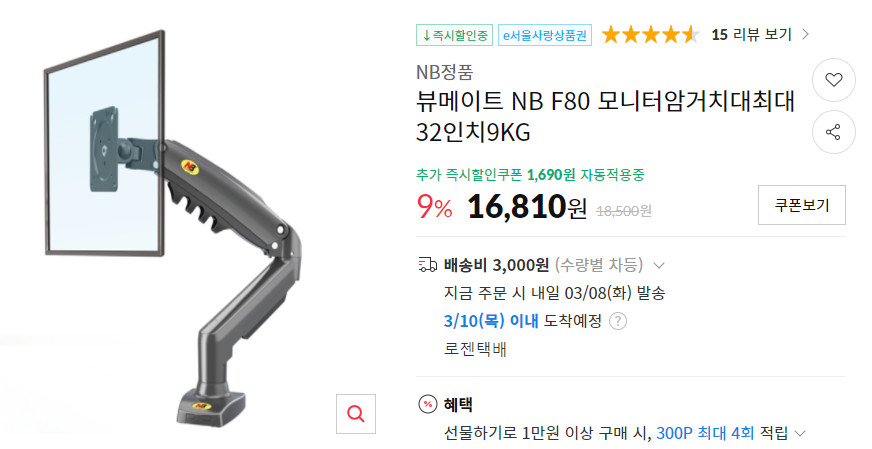 만약 모니터 무게가 8kg 넘어간다면 프리미엄 제품을 구매하는 것이 좋긴한데
