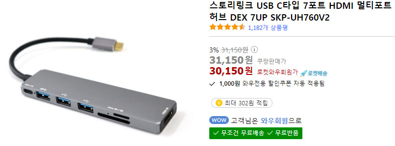 타입C 허브는 스토리링크 제품을 사용하고 있고