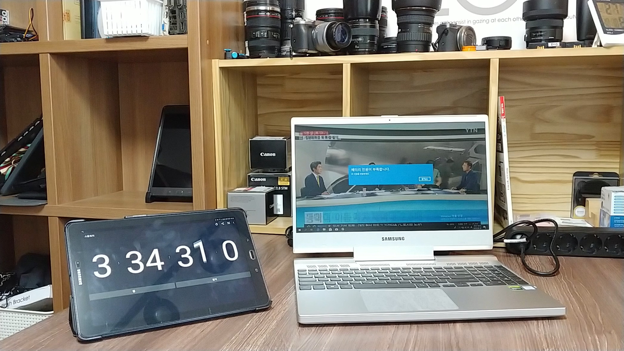 배터리모드는 향상된 배터리, 밝기는 70%, 24시간 유튜브 뉴스를 계속 재생 시켰습니다.