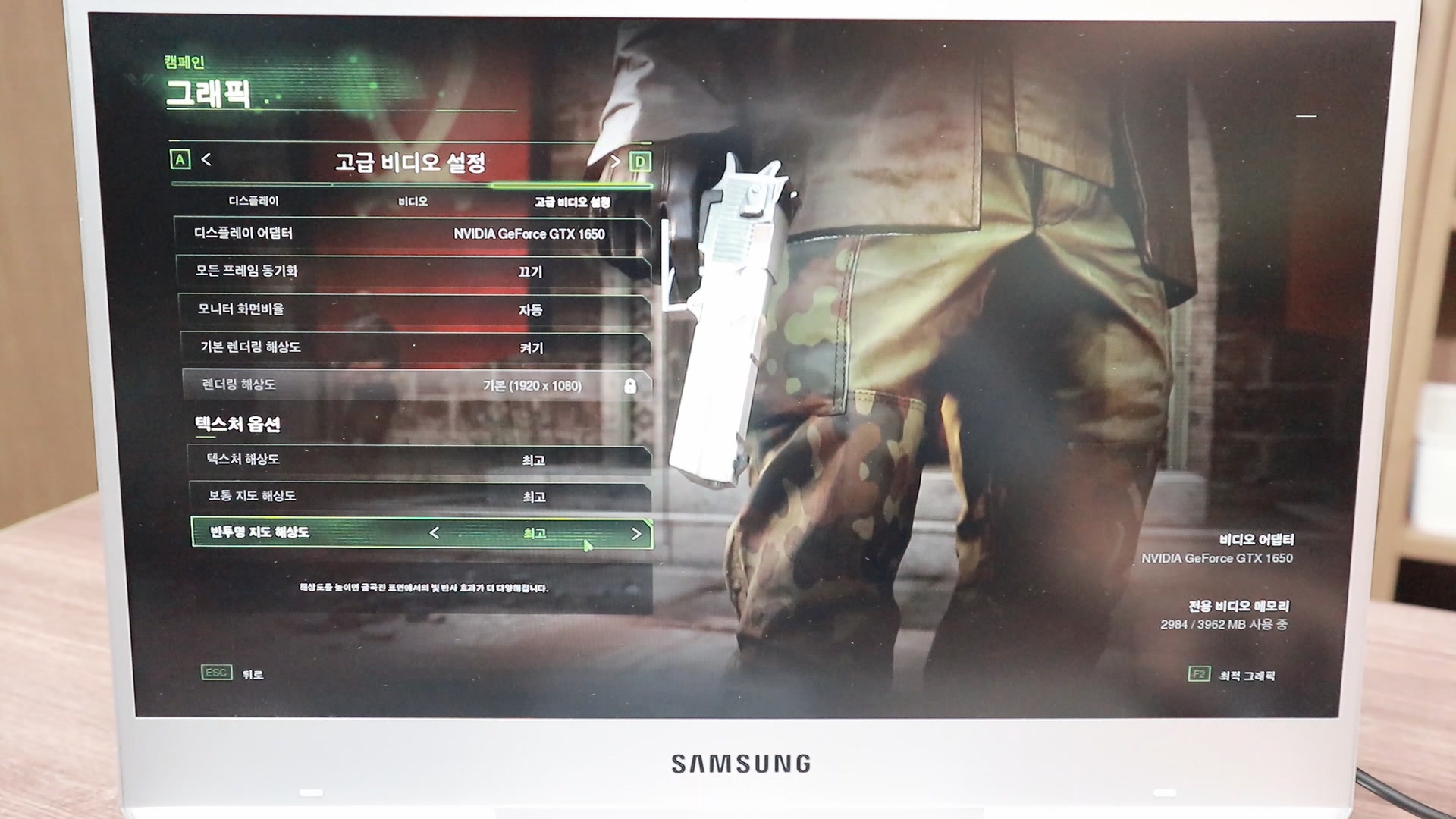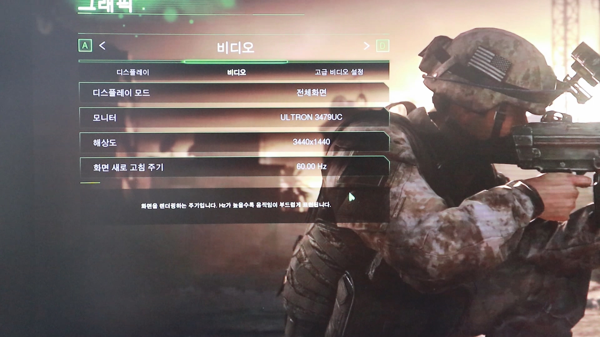 게임 설정은 1920X1080에 액정이 허용하는 최대 주사율인 60Hz 그리고 그 외 다른 설정들도 최고옵션으로 설정했습니다.