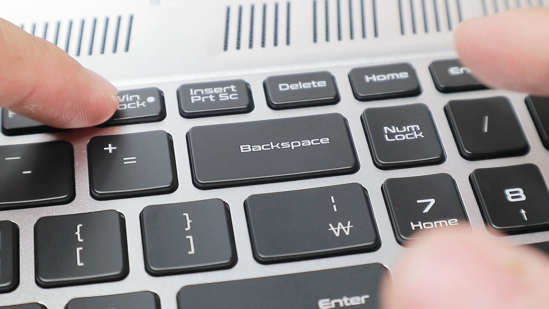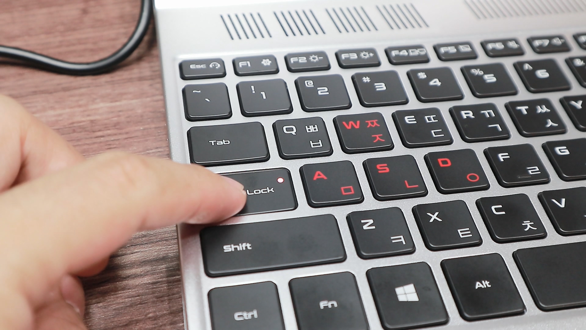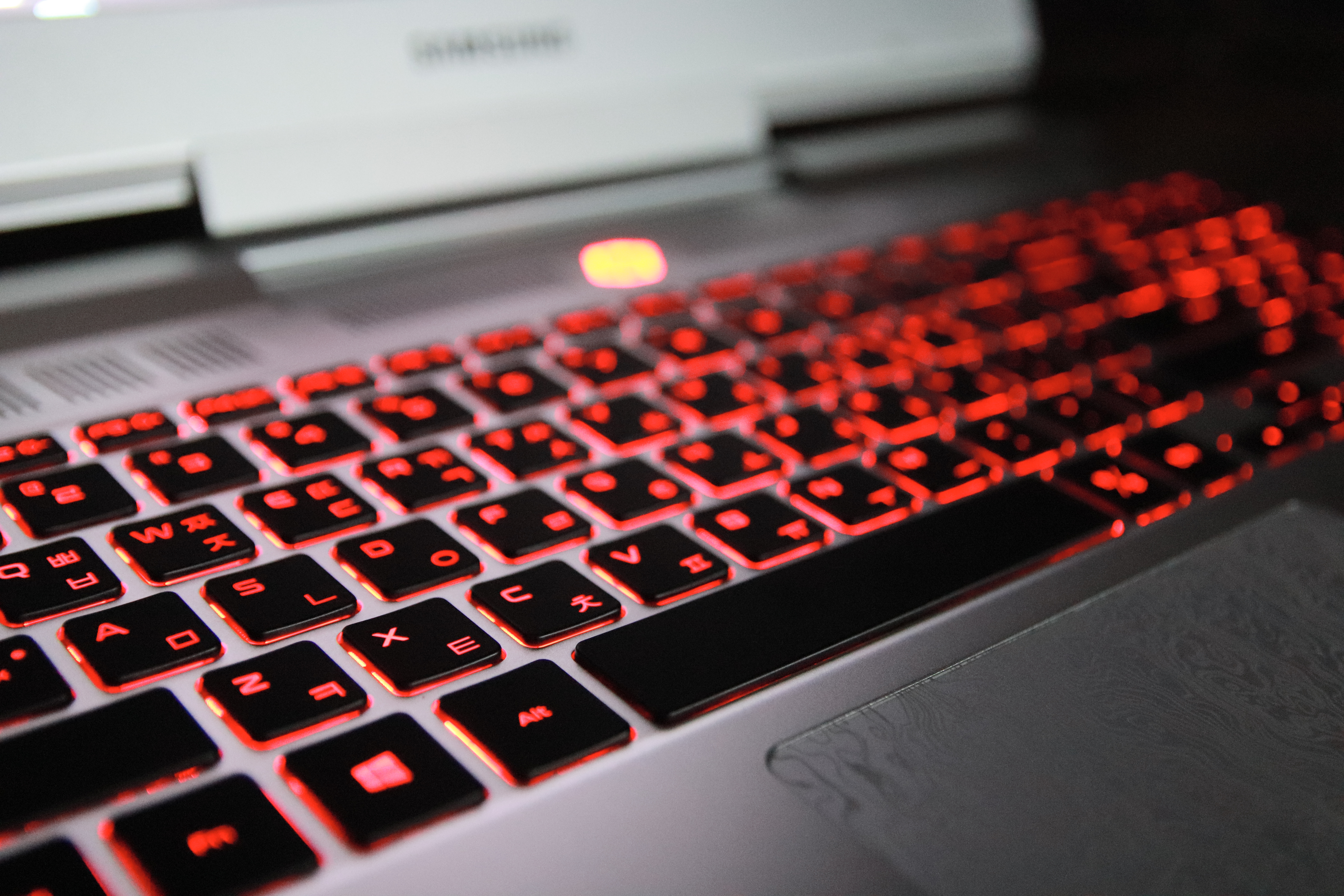 하지만 삼성 오디세이가 꼼꼼하게 신경 쓰지 못한 부분도 있습니다. Caps Lock 버튼은 이렇게 LED가 들어옵니다. 그리고 게이밍 노트북에만 있는 Win Lock에도 이렇게 LED가 들어와 키가 적용되고 있는지 시각적으로 바로 알 수 있죠. 하지만 Num Lock에 LED가 없어요. 뭐 굳이 없어도 사용하는데 그렇게 큰 지장은 없지만 그래도 텐키가 달려있는 풀사이즈 키보드에 Num Lock 표시창이 없다는 부분은 이 노트북이 얼마나 문서작업을 하는 유저에게 관심이 없는지를 알 수 있죠. Num Lock에 LED가 없으면서 Win Lock에 LED가 있는 건 이 노트북이 게이밍 노트북이라는 것을 확실하게 보여주는 부분입니다.