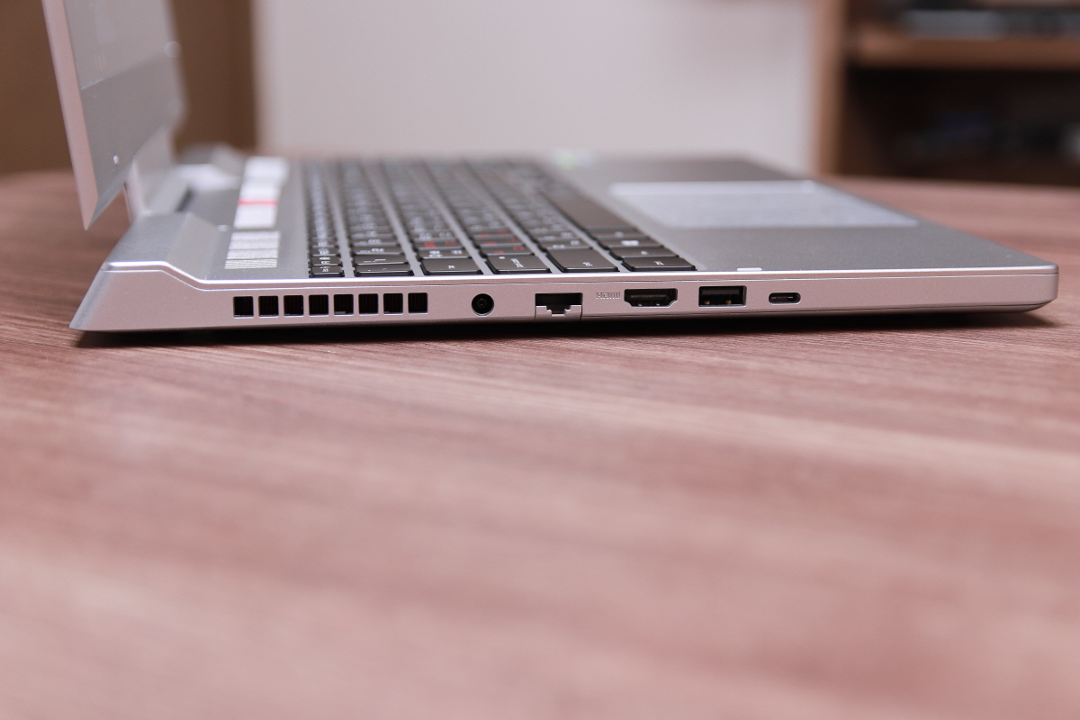 포트 구성은 기본에 충실합니다. USB3.0 3개, 이어폰잭, 켄싱턴락, 랜포트, 전원, HDMI, C단자까지 있네요. 항상 C단자에 PD충전 되는지 물어보시는 분들이 많던데, 고성능 노트북은 안됩니다