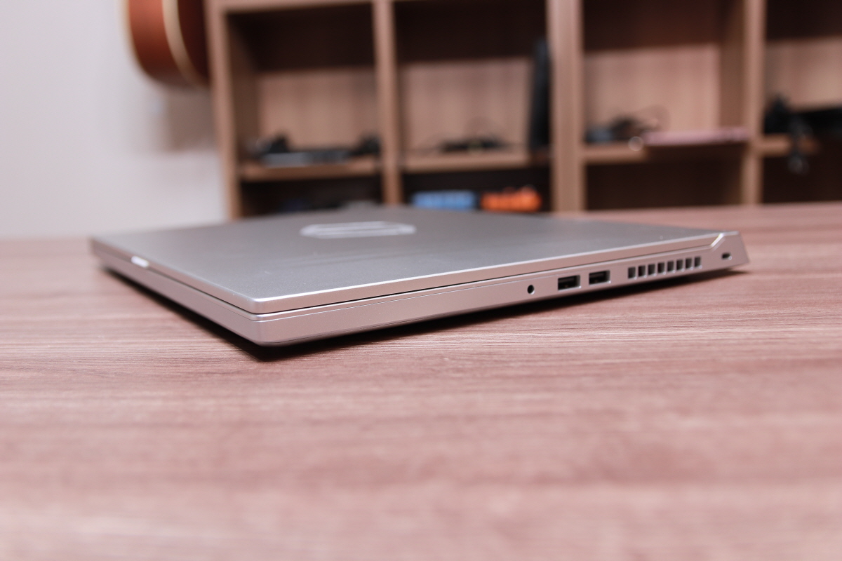고성능 노트북답게 발열구는 4개가 보이고, 이 발열구 4개에서 따뜻한 바람이 계속 나온다고 생각하시면 돼요. 저전력 노트북들은 발열구를 흰지 사이의 안쪽으로 숨기는 추세입니다. 반면 이런 고성능 노트북은 발열 처리가 중요하기 때문에 최대한 크고 많이 뚫어 놓죠.