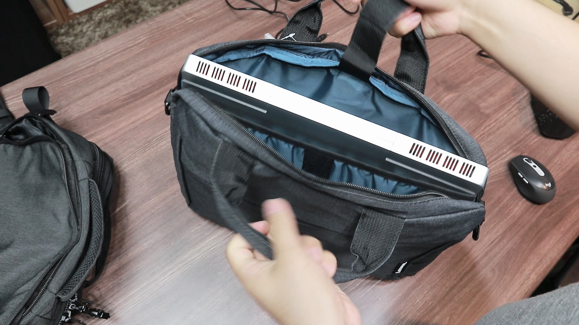 이렇게 넉넉한 노트북 가방에는 당연히 잘 들어가지만 일반 15.6인치 노트북 가방에는 들어가기 좀 힘들 수 있어요. 들어간다 해도 끝 부분 까지 안전하게 보호받지는 못하죠. 그렇기 때문에 노트북 가방 구매 전 사이즈를 반드시 체크해 주세요.