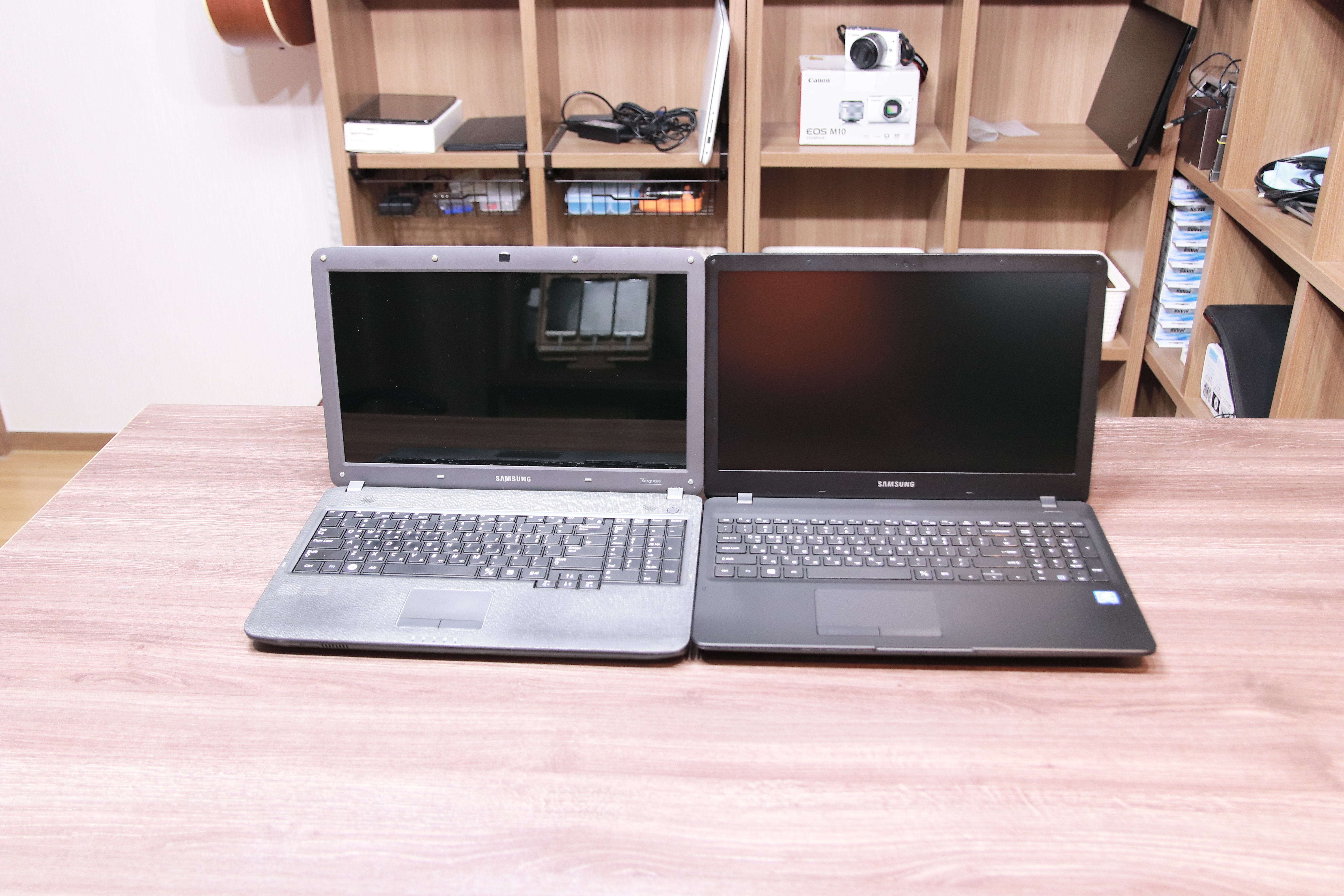 오른쪽 노트북은 오늘 리뷰할 삼성 노트북3 셀러론 모델이고 왼쪽 노트북은 10년 전 제가 대학생 때 구매한 삼성 듀얼코어 노트북입니다.