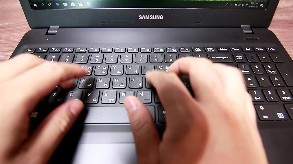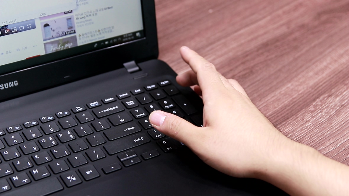 키 배열이 넉넉한 풀사이즈 키보드인데, 전통적인 풀사이즈 키보드를 선호하시는 분들은 좋아하실 수 있는 키보드입니다. 키보드 배열이 많이 넉넉하기 때문에 오타율 적고 숫자패드 사이즈도 넉넉해서 문서작업 하기 편리합니다. 하지만 키보드 배열이 넉넉하다는 장점은 노트북 사이즈가 크다는 단점으로부터 시작 됩니다. 넓고 넓은 태평양 배젤 덕분에 노트북의 전체 가로길이가 길고, 노트북의 가로길이가 길기 때문에 키보드로 사용할 수 있는 면적도 넓어지는거죠. 경량화된 노트북은 아무리 15.6인치라도 이렇게 넉넉한 키보드를 가지질 못합니다. 앞으로 이런 넉넉한 키보드 배열은 17인치에서나 볼 수 있고, 15.6인치는 아마도 이 노트북이 마지막이 아닐까 싶네요. 냉정하게 말씀드리면 이런 노트북은 삼성이니깐 팔리는 거예요.