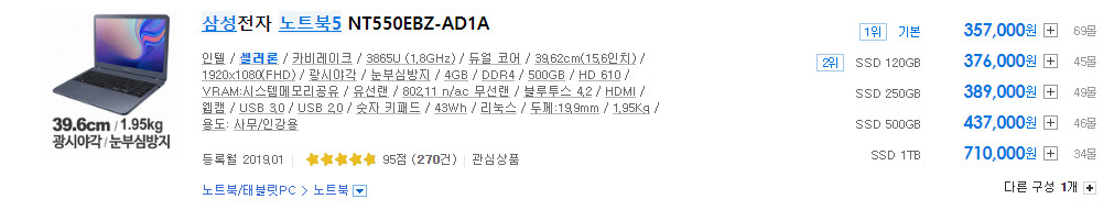 물론 TN패널인지 알고, 본인이 TN패널에 불편함이 없다면 좋은 선택이 될 수 도 있다고 생각합니다. 삼성이라는 브랜드 네임만 포기하면 이 성능에 이 가격에 IPS패널로 구매하실 수 있습니다. 아무리 보급형 IPS라도 TN보다는 낫습니다. 노트북을 오래 사용하길 원하시면 IPS로 구매하시는 것이 현명합니다.