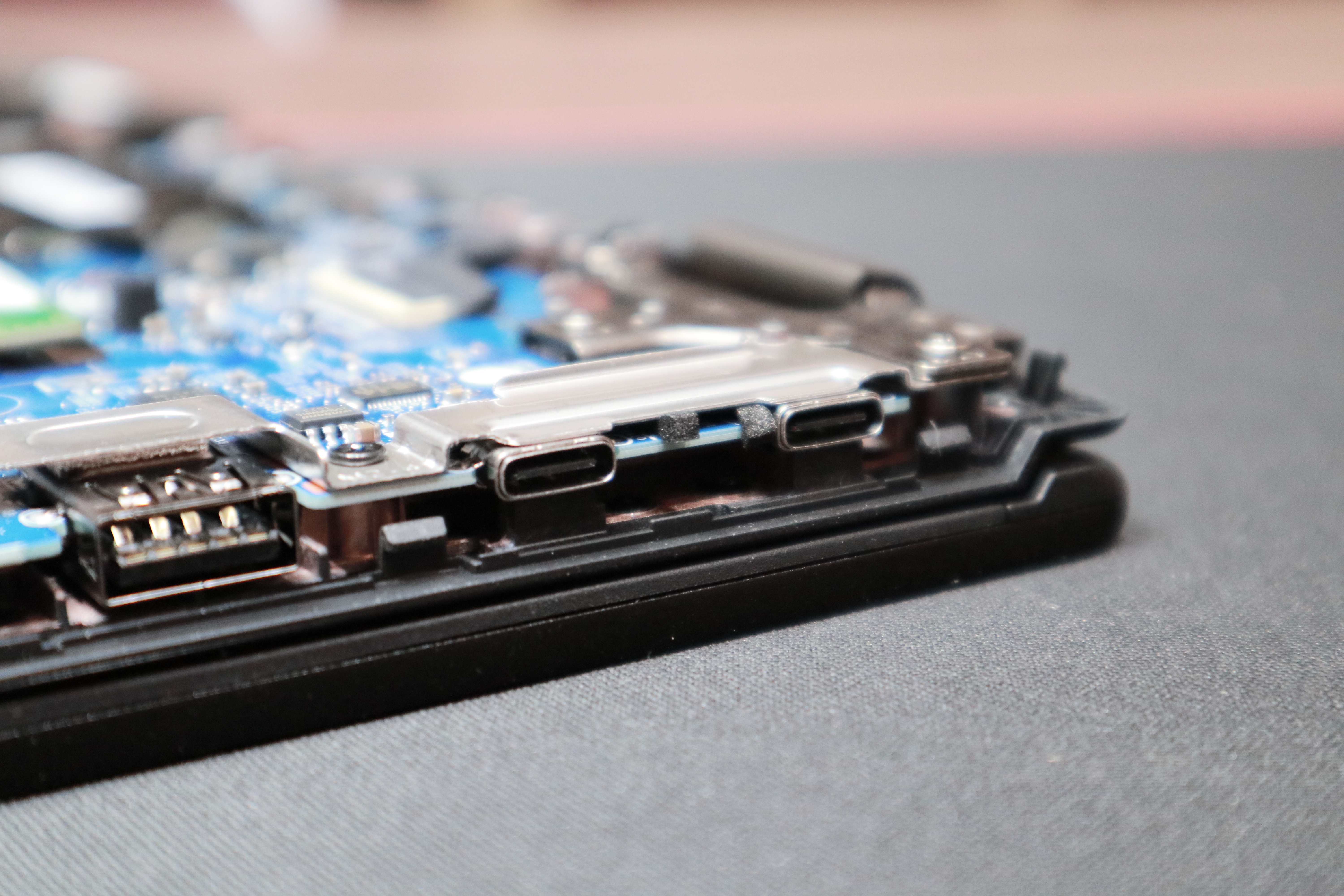 * 유심히 볼 부분이 이 포트 부분을 감싸고 있는 이 스틸 재질의 가드인데, 물론 초슬림 바디이기 때문에 굉장히 얇은 스틸을 사용했지만 그래도 이런 가드가 있음으로 노트북의 내구성이 굉장히 좋아집니다. USB는 물론 충전단자도 많이 사용하면 단자에 유격이 생기기 마련인데 그 유격을 막아주는 역할을 합니다. 노트북에서 굉장히 중요한 부품인데 원가 절감과 무게증가로 다른 브랜드의 노트북에서 보기 힘든 부품이며 무게보다 내구성을 더 중요하게 생각하는 싱크패드에서는 보기 쉬운 부품입니다.