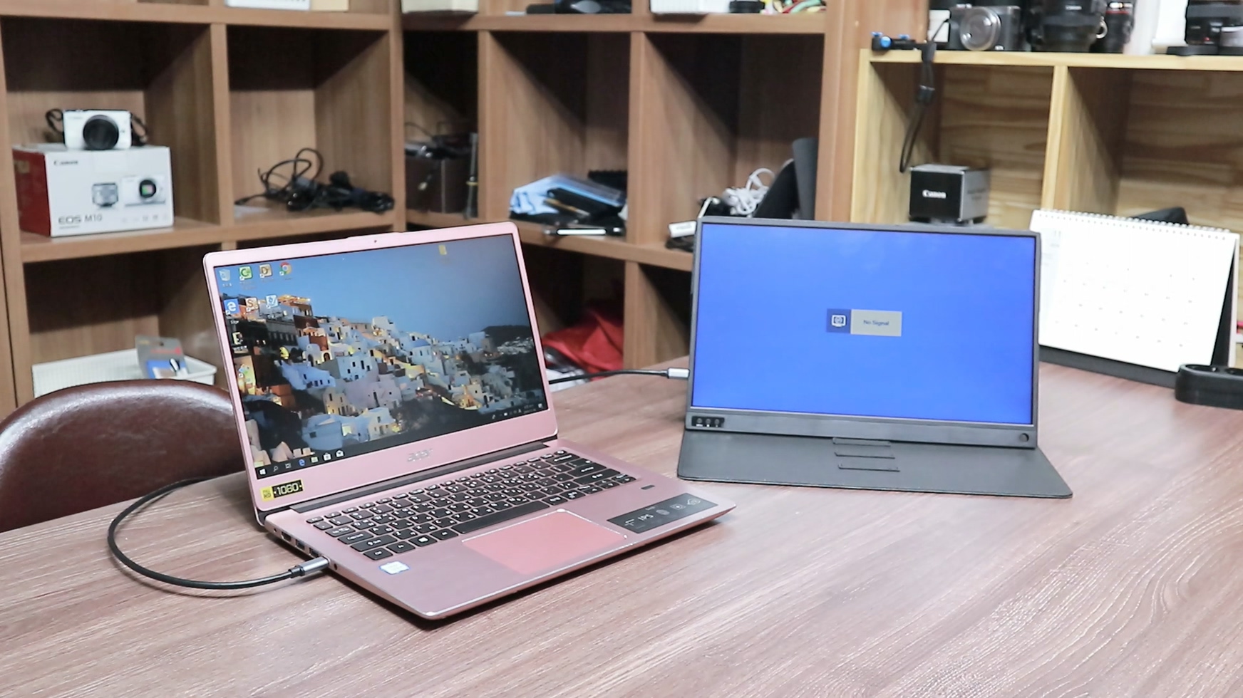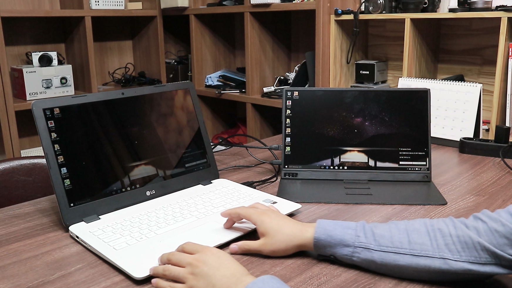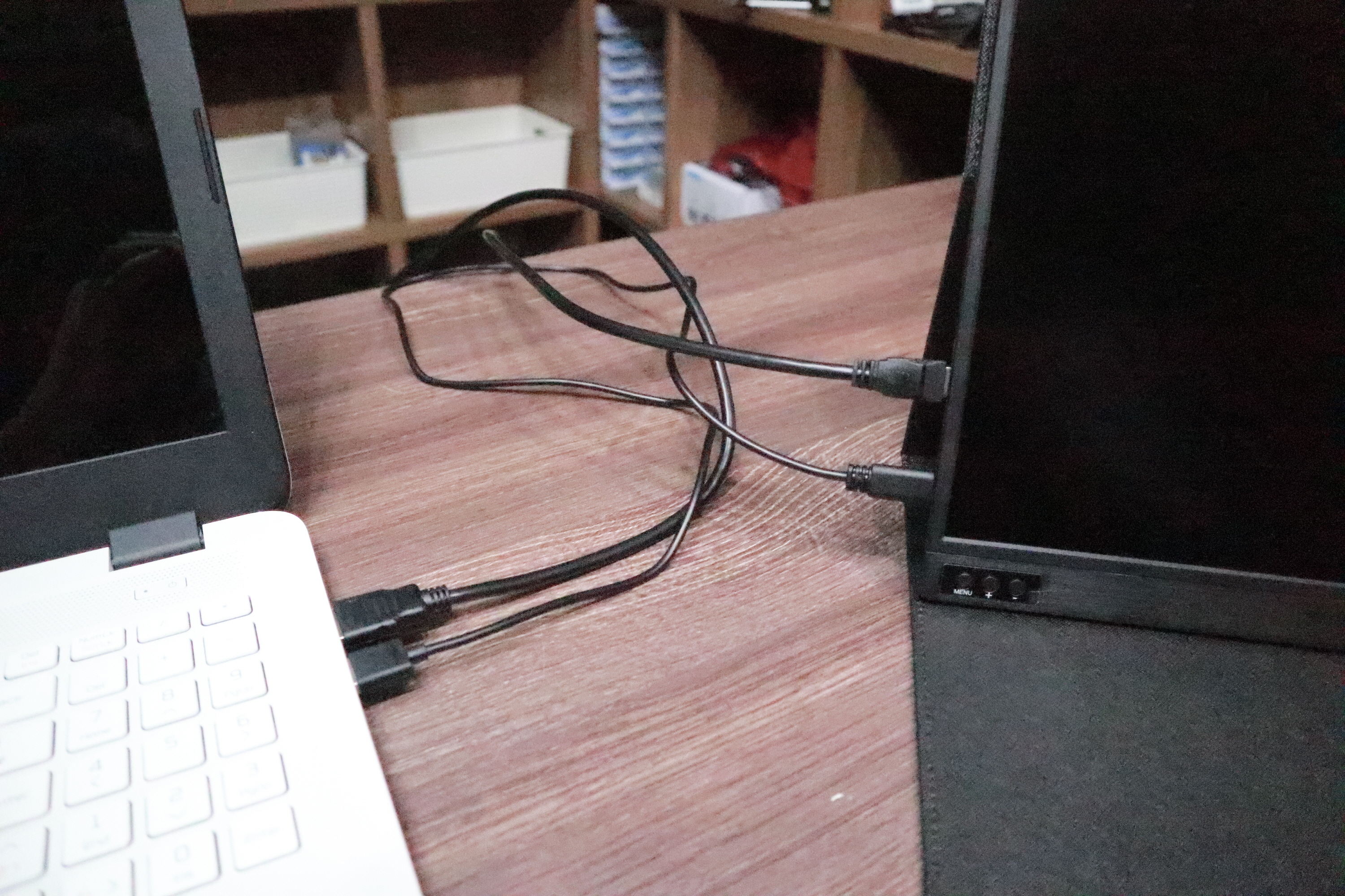 타입C 단자가 없는 일반 노트북은 그냥 일반 모니터 연결한다고 생각하시면 돼요. HDMI로 두 기기를 연결하고, 필요한 전원은 노트북 USB에서 가져온다고 생각하시면 됩니다.