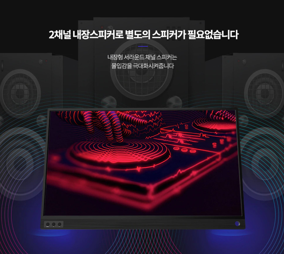 IPS패널로 시야각도 좋고 화질 좋아요. 전문가가 사용하기에는 다소 색감이 진한 느낌이 있지만 뭐 전문가들은 이런 10만원 초반의 제품은 쓰지 않겠죠. 일반적인 유저분들이 사용하기에 충분히 좋은 수준의 휴대용 모니터 입니다. 밝기도 아주 밝습니다. 추가 전원 없이 C to C로만 연결하거나 노트북의 전원을 사용 하면 백라이트 밝기가 50%로 고정 되지만 50%도 충분한 밝기 입니다. 생각보다 훨씬 만족스럽네요. 백라이트 밝기를 올리고 싶다면 외장 전원을 가져와야 하지만 제 경험으로는 굳이 그럴 필요 없어 보입니다. 스피커는 2W급으로 없는 것 보다 나은 수준입니다. 하지만 볼륨키가 직관적으로 앞에 나와있어서 사용하기는 편합니다.