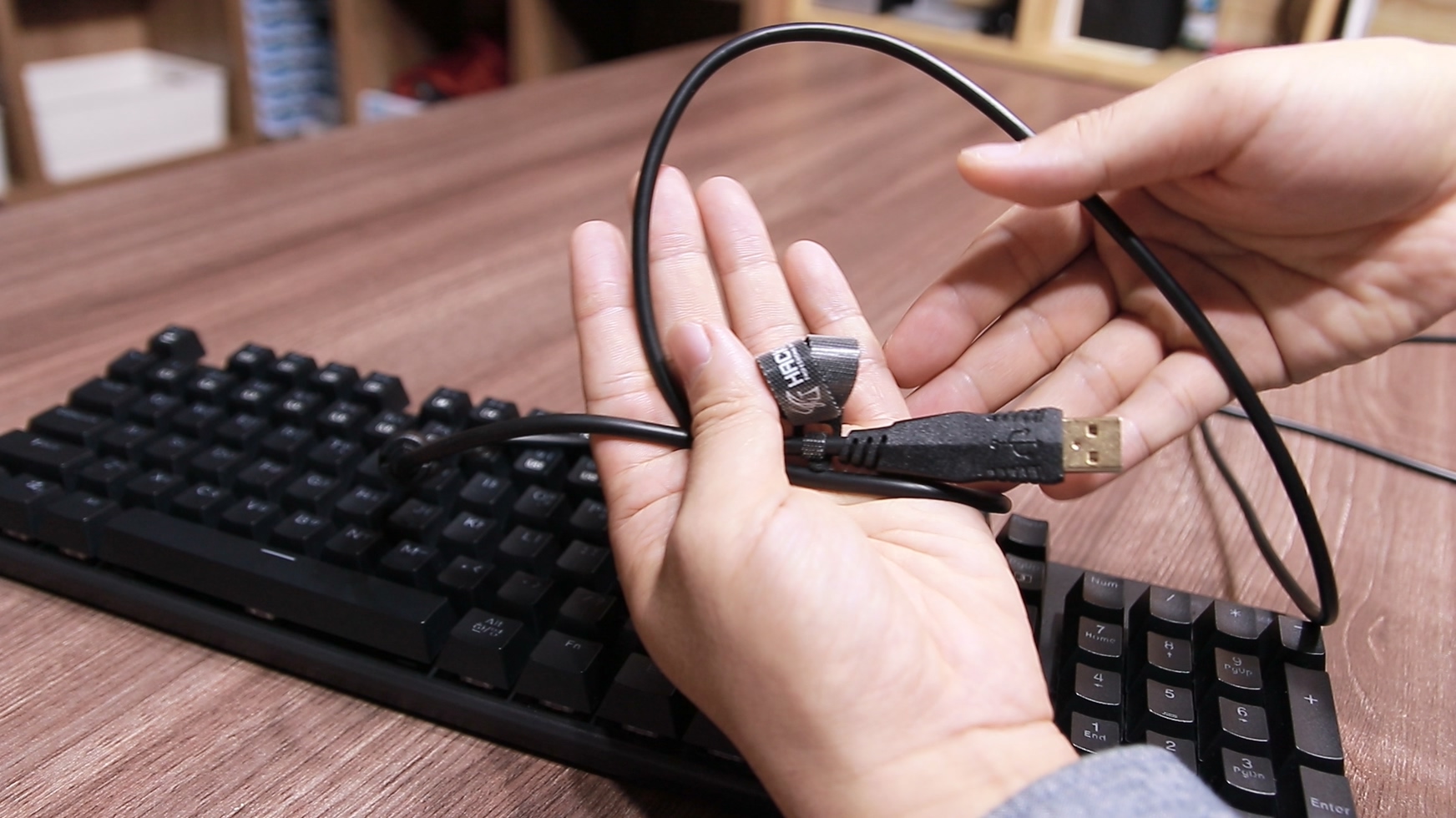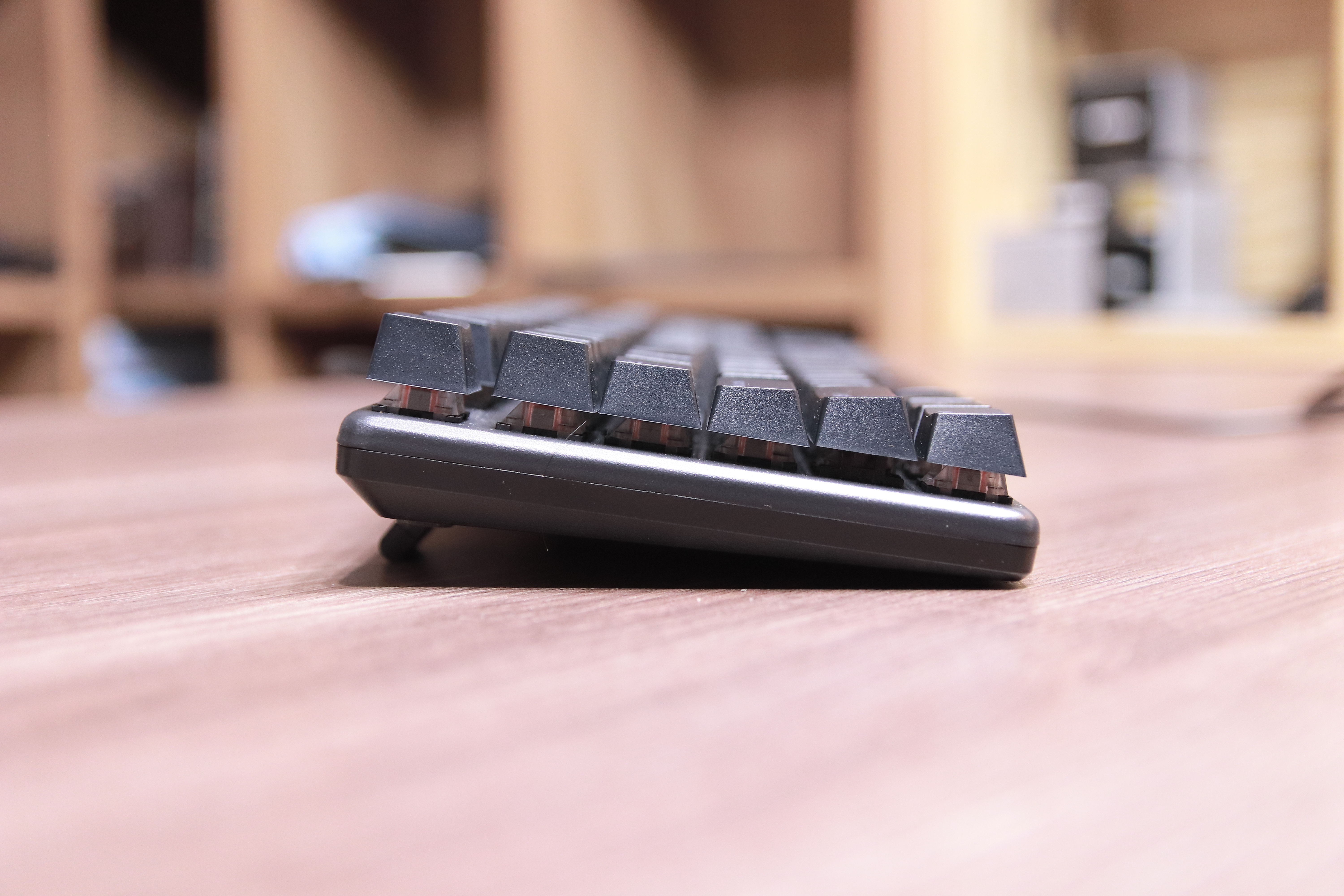 가격이 가격인 만큼 전체적으로 플라스틱 마감이고, 키캡에 LED가 들어오지 않으면 기계식 키보드인지 모를 정도의 개성 없는 디자인을 가졌습니다. 좋게 말하면 깔끔해요. 케이블도 일반 케이블입니다. 직조 케이블이 사용할 때 편하긴 하지만 일반케이블도 나쁘지 않습니다. 높낮이는 1단계만 가능합니다.