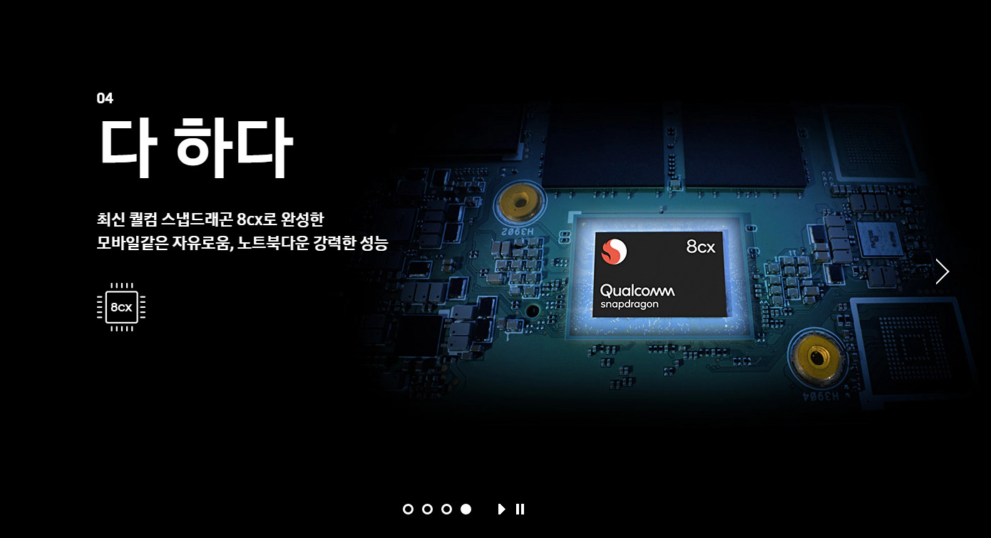 삼성이 국내 대기업 답게 국내 소비자 니즈 반영에 대한 부분은 정말 최고인듯 합니다. 아무리 좋은 삼성 노트북9을 사용해도 장시간 들고있으면 무겁고 배터리 타임에 대한 휴대성에 불만이 생기기 마련이거든요. 그 소비자 니즈 부분을 정확하게 파악해서 만들었고 공격적으로 마케팅하고 있는 노트북입니다. 하지만 기술적인 한계를 극복한 노트북이 아닌, 다른 방향을 제시하고 있는 노트북입니다. 그런데 스냅드래곤이라는 이 방향이 우리가 일반적으로 사용하는 노트북의 방향과는 달라요. 이 제품을 일반 윈도우 노트북으로 생각하고 구매하면 반드시 후회합니다. 조금 극단적으로 생각해서 안드로이드 기반의 윈도우 노트북이라고 생각하시는 것이 차라리 낫습니다.
