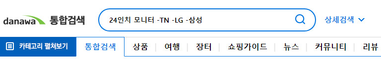 인치와 패널만 파악해도 모니터 구매하는 건 문제 없어요. 구매 방법을 알려 드리겠습니다. 저는 다나와 사이트 이용하는데 네이버 쇼핑이나 기타 다른 오픈마켓도 동일하게 가능합니다. 먼저 원하는 인치를 입력하고, 모니터라고 입력하고, TN패널은 걸러야 하니 -TN 이라고 적습니다. 검색할 때 마이너스 부호를 사용하면 뒤에 따라오는 단어는 검색에서 제외 됩니다. 이렇게 검색하고 그 이후 가격의 범위를 지정할 수 있는데 여기세 90,000원 부터 140,000원 까지로 입력하고 다시 검색합니다.