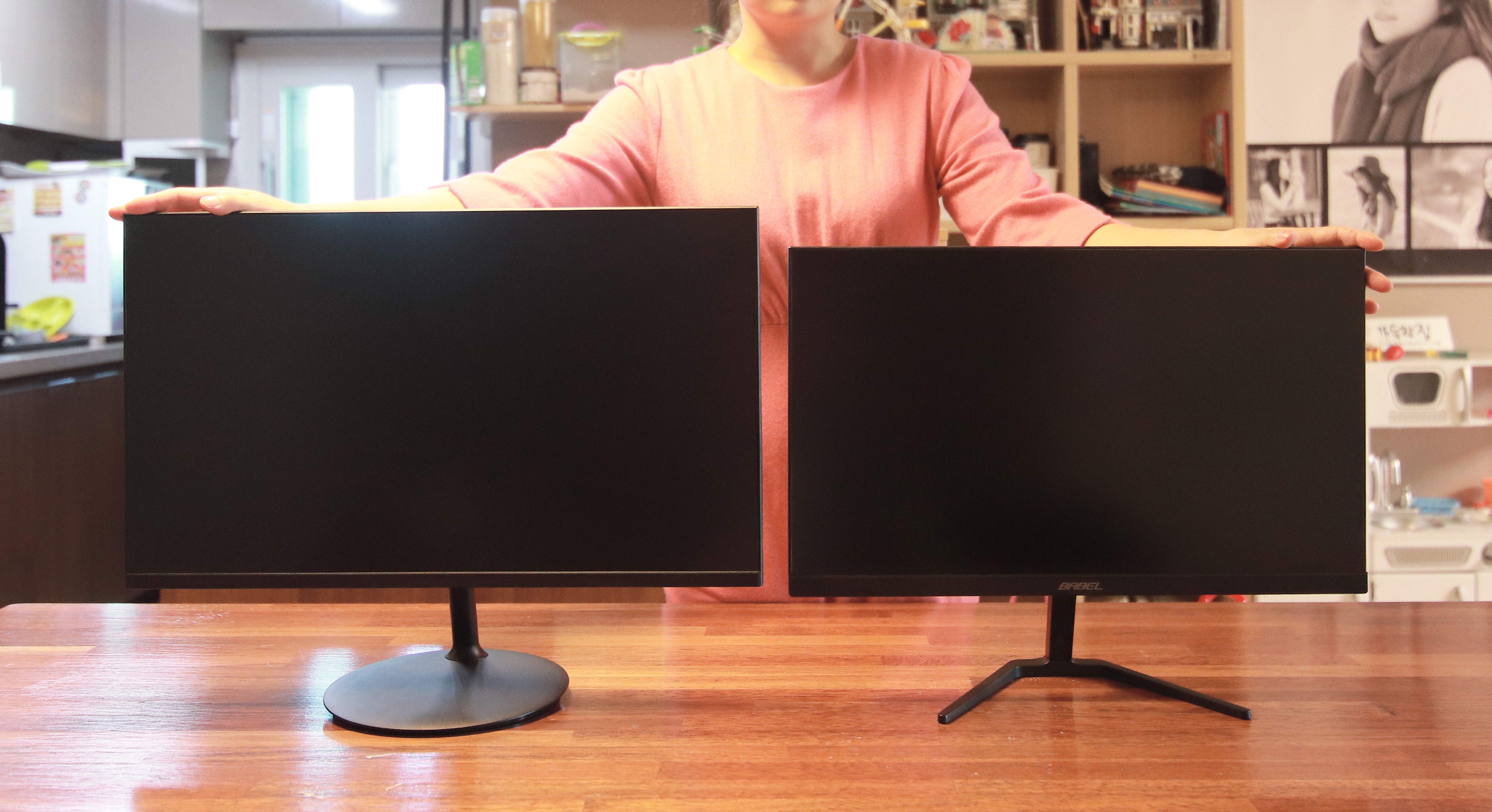 지금 보고 계신 모니터가 24인치와 22인치 입니다. 이정도 차이가 나는데 22인치도 공간도 적게 차지하고 사용하기 좋아요. 그런데 가격이 약 1~2만원 차이밖에 나질 않거든요. 그렇다면 좀 더 큰 24인치 모니터가 좋은 판단이라고 생각합니다.