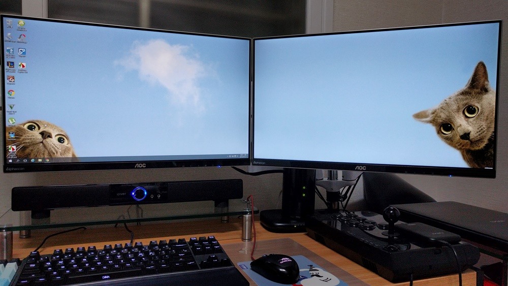 결국 듀얼모니터는 가로로 길어지는 구성입니다. 하지만 책상에 앉아서 바라 볼 수 있는 시야는 한정되어있죠. 결국 메인으로는 한 모니터밖에 사용하지 못해요. 옆에 있는 모니터는 가끔 보는 보조용으로 사용해야 사용 효율이 좋지, 듀얼모니터 모든 화면을 메인으로 사용하면 목만 아픕니다. 그래서 가장 먼저 메인 모니터를 정하세요. 과하지 않은 정도에서 큰 모니터가 좋겠죠. 그리고 좀 더 작은 사이즈의 보조모니터를 듀얼모니터로 사용하시는 것을 추천 드립니다. 보조모니터가 크면 시선이 집중되기 힘들기 때문에 작아도 괜찮아요. 그리고 듀얼모니터나 트리플모니터 구성 시 굳이 다수의 모니터를 동일한 걸로 맞추려고 하지 마세요. 미적으로 동일한 모니터 2개가 딱 연결되어 있으면 하나같이 보이는 장점이 있지만 게임이 아닌 일반적인 사용환경에서는 불필요한 구성이에요. 효율적인 사용을 위해 큰 메인모니터와 작은 보조모니터로 듀얼모니터 구성을 하시는 것이 더 현명합니다.